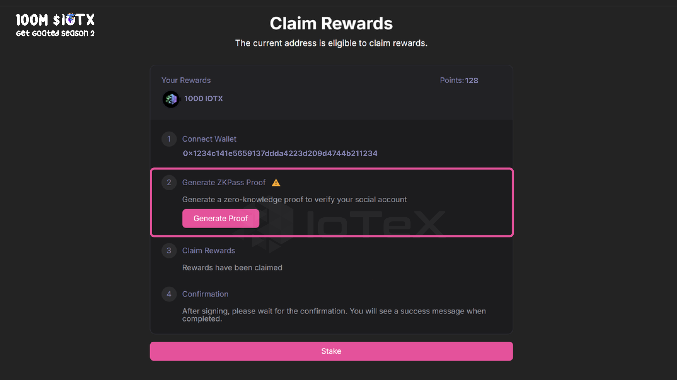 The claiming page is live as of Monday, February 24th. Users will be able to start the $IOTX claiming process.